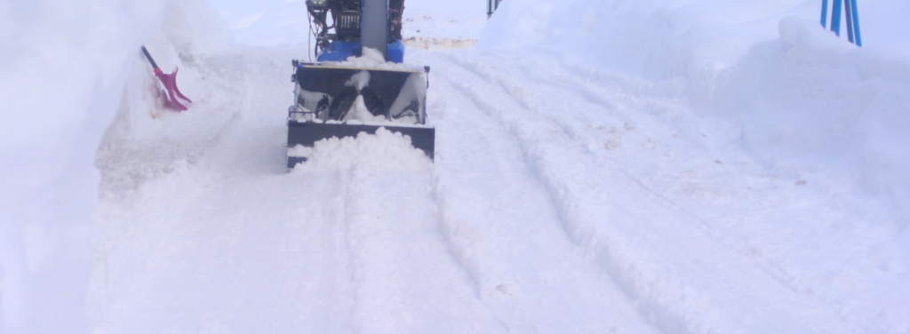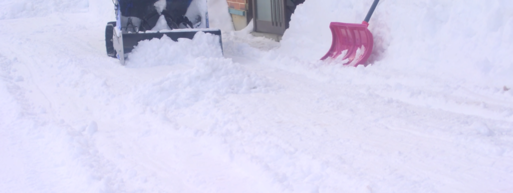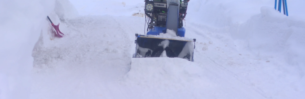 こうやって圧雪をガッツリ削りたい時はエンジン式のブレード除雪機がお勧めですし、早朝に静かに除雪したい時は電動除雪機がお勧めですね。
