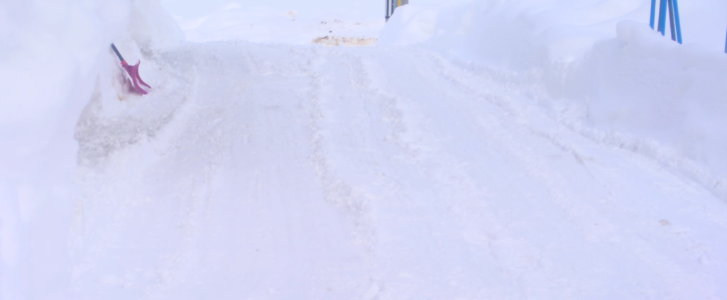 出っ張りに乗り上げると除雪機はぐらついてしまうので、しっかりとハンドル握ってバランスとりながら除雪しました。