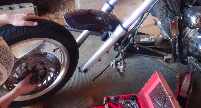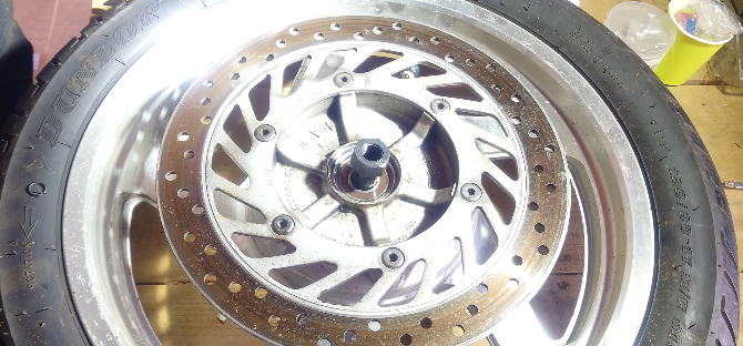 フロントホイールの外しダストシールを外すのですが、他のバイク動画などではマイナスドライバーで簡単に外れたりもしますが、実際はなかなか外れるようなものではありません。