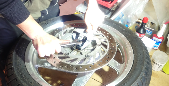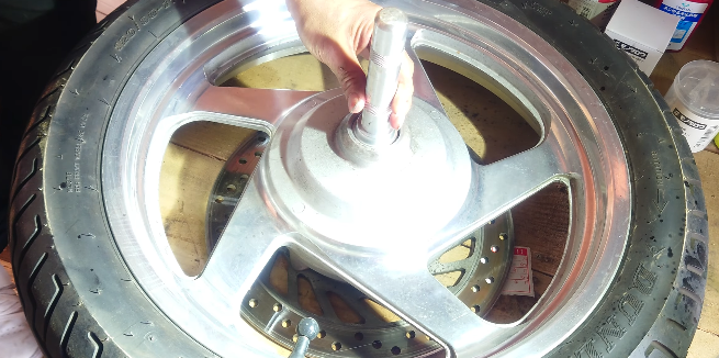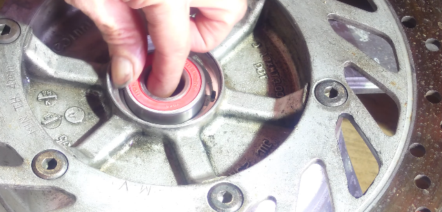 ベアリングを取り付けたら車体にホイールを戻すだけ。