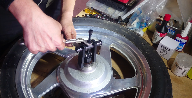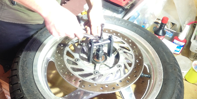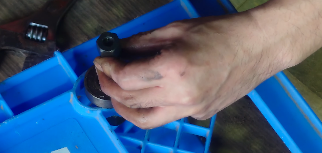 結構本気で締め付けてベアリング下に爪が広がるように、ここで失敗するとベアリングが抜けません。