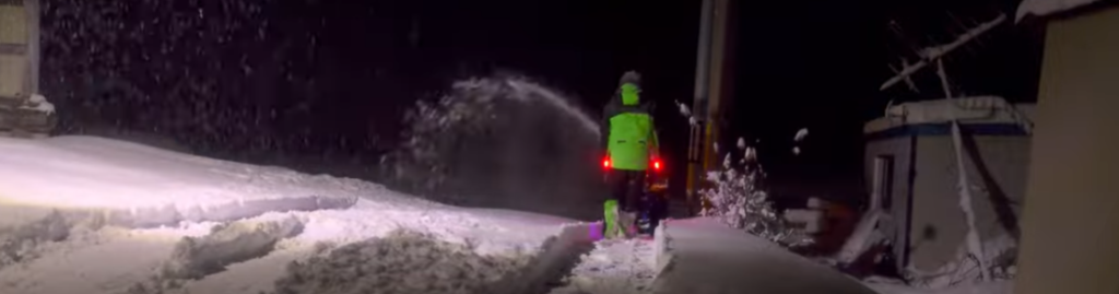 ちょっと湿った重めの雪なのでブレードで押してもオーガの方へ雪がこぼれ、それをシューターから飛ばそうとすると詰まってしまいました。
