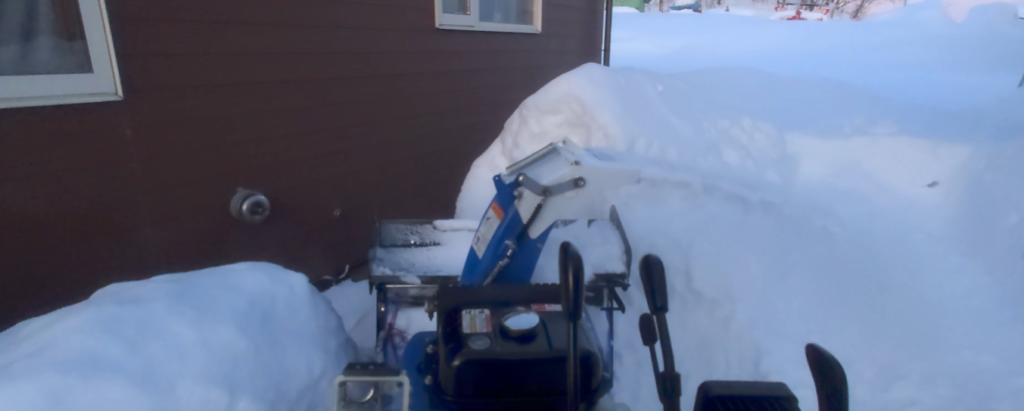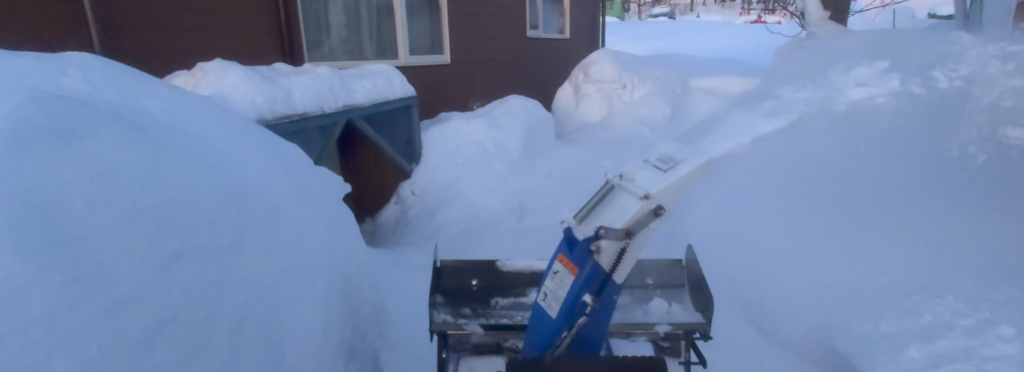 屋根の角度が急なので勢いよく落雪すると壁から離れたところに積み上がっていきます。
