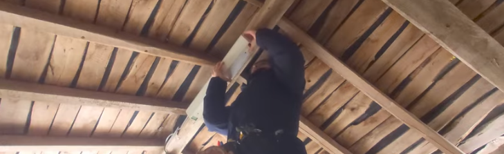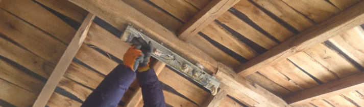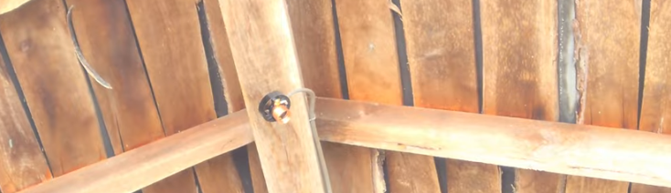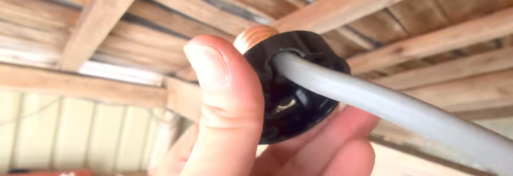 その後、天井に取り付けようとすると、ネジを入れるところに心線が来ていて固定できません。