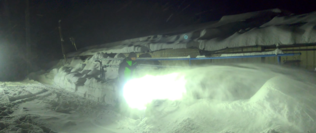 ある程度集まればあとはブロワーすれば、また雪の山ができてまたそれをブロワー繰り返し。