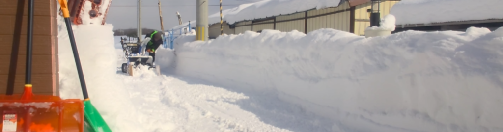 こういう時プラスチックのスノーダンプじゃだめなのに、普通のアルミスコップなどなら雪を投げれるけども、ここは迷わず除雪機YT660Bの出番です。