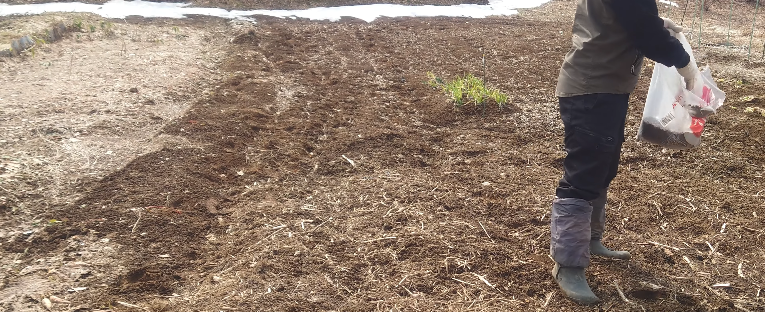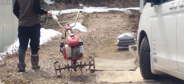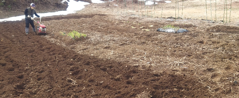 やっと雪が無くなって土が見えてきたので、晴れた週末しかできない耕運をしました。