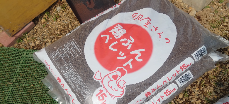 鶏ふんペレットは肥料成分が多く効き目はゆっくりスタートということで、化成肥料が切れたら鶏ふんが効き始めるというイメージで撒きました。
