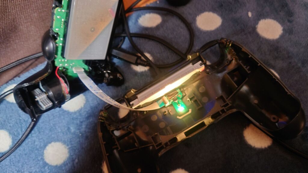 さっそく部品交換して本体と接続してみるとランプが点灯しました。これは期待できそうなので元の状態へと組み立てていきます。