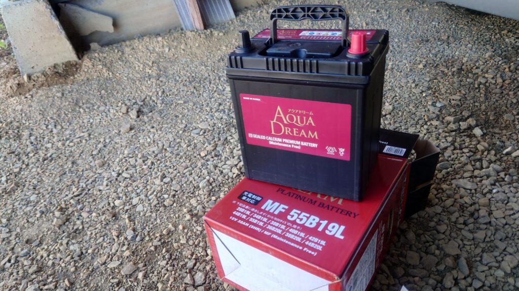 そういうわけで新品のアクアドリームバッテリーのメンテナンスフリー55B19Lの充電制御車対応を購入しました。