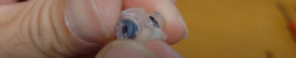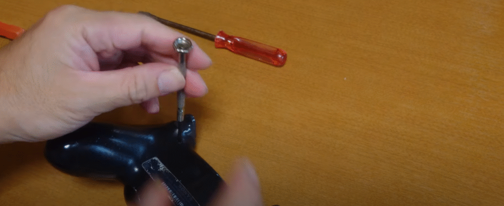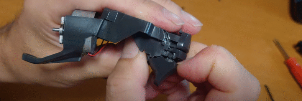 新しい部品を取り付けると指が入らないので精密ドライバーで押し込んでみました。