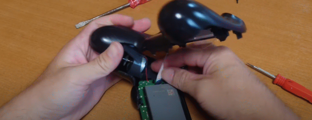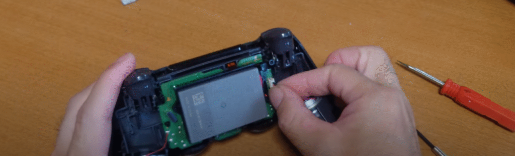 バッテリーのコネクタも根元を掴んで引っ張るだけですね。コントローラーの充電ができなくなったりすぐ電源が落ちるようであれば、バッテリーを新品に交換すると良いでしょう。